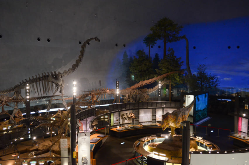 The tour of the museum starts from the basement area, where you may wander around looking at dinosaurs diorama and fossils. The display of the dinosaurs is arranged in such a line that will lead the visitors to walk around without missing anything. The exhibition continues up to the second floor, the location of earth science and history of life exhibition. Other than the main exhibition area, visitors may also experience the Dino lab where you can touch the diorama and the Fossil Preparation Lab where you can observe researchers working on new fossils found in Fukui and around Japan. Before leaving the museum, a souvenir shop on the fourth floor that has various choices of goods is worth a visit.