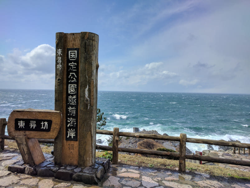 From Fukui Station: Take the Echizen Railway from Fukui to Mikuniminato Station (770 yen). Then take a bus from Mikuniminato to Tojinbo (190 yen).