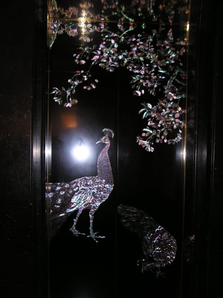 There are no longer live animals at the hotel, but on your next visit, be sure to ask to see the lacquer guest elevators. Although they are off-limits unless you are staying the night, if it isn't too busy the elevator man is obliging. Both outside and inside are fabulous mother of pearl work peacocks with their feathers spread dramatically.