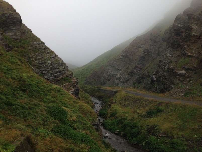 The sky, now battleship grey, not so much meets the sea at the horizon as it just thickens to ashen fog and then thickens further to leaden water. The steam from hot coffee, that you sip from a tin coffee cup, adds welcome warmth to the somber beauty of the cool overcast summer morning. Your camp’s been broken down, your gear has been loaded and after coffee you ride to the camp office to check out. There, an elderly gentleman minding the camp store asks about your destination today. You tell him Tappimisaki and are wished well with a crisp “keppare”, Tsugaru dialect for “gammbate”, which in Japanese means “do your best”.