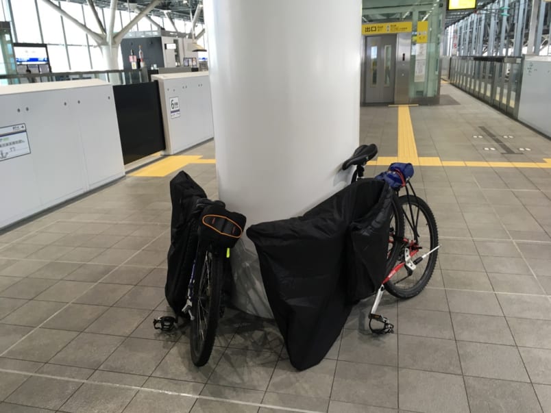 There are numerous options and combinations of options for getting out to Nihonkai and back to Tokyo, including Shinkansen, highway bus, airplane and car. Bicycles can be carried onto the Shinkansen (in a simple carry bag), and airplanes (if they are packed in luggage style carry cases and checked), but generally not on busses (though some will take boxed bikes in the luggage compartment). They can also be shipped in proper boxes by courier to and from courier depots or hotels across the country. New folding bicycles are also a choice and are easy to bring almost anywhere, but may not be suited for long distance road riding and carrying camping gear.