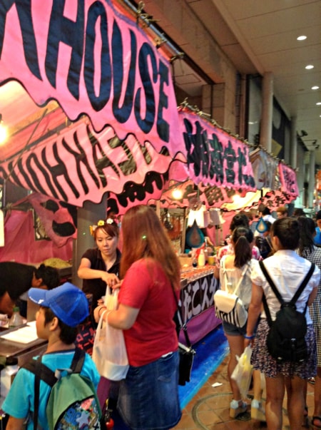 Adults may also want to grab a glass of “Nama biiru” (Japanese beer) and for the kids you can buy Calpis Soda (a sweet Japanese drink that’s worth trying) from the vending machine. And while Japanese consider that eating while walking is not good manners, it is totally okay to do it during an omatsuri.