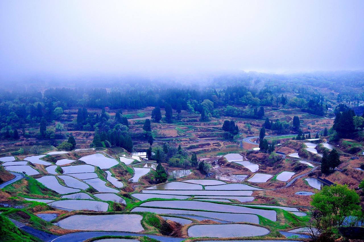 The Beautiful Landscape of Hoshitouge Rice Terrace, Niigata