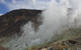 Owakudani, written as 大涌谷, in Japanese means "Great Boiling Valley". It is both poetic and a bit mysterious. The valley was created in the result of a Mt. Hakone eruption around 3000 years ago, and still experiences volcanic activity. It is mostly safe, nevertheless. The Tourist Center was closed between 2015 and 2016, but now it is available again, as well as the Hakone ropeway.