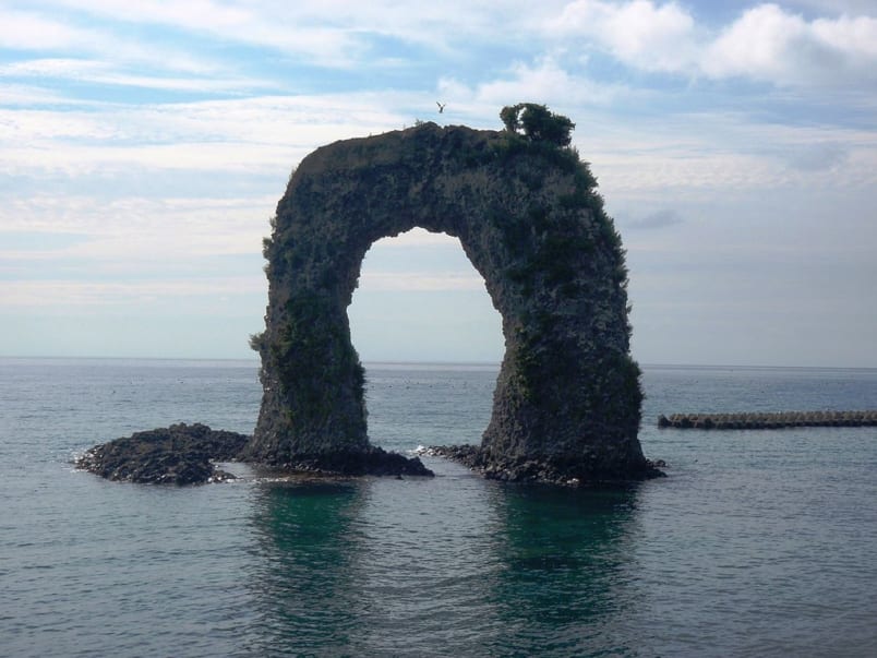 Nabetsuru Rock, of Okushiri IslandOkushiri Island is located off the coast of southern Hokkaido’s Oshima Peninsula and boasts a natural rock arch that is famous across Japan. The warm currents and clear blue waters make marine sports like snorkeling, scuba diving and swimming big draws for visitors despite its northern latitude. Camping is among the island’s accommodation choices along with hotels, guest houses, and hot spring resorts.