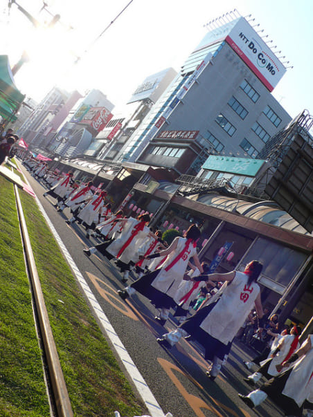 This festival is one big dance party with pre-festival dance lessons for tourists! Dancers come in traditional yukata, happi (a festive jacket), or home-made costumes! Hana Densha, “flower trains” that are gaily decorated with lights and colorful decorations, are parked along the road side. At night they are lit up and add a festive flair to the beating of taiko drums and thousands of dancers!