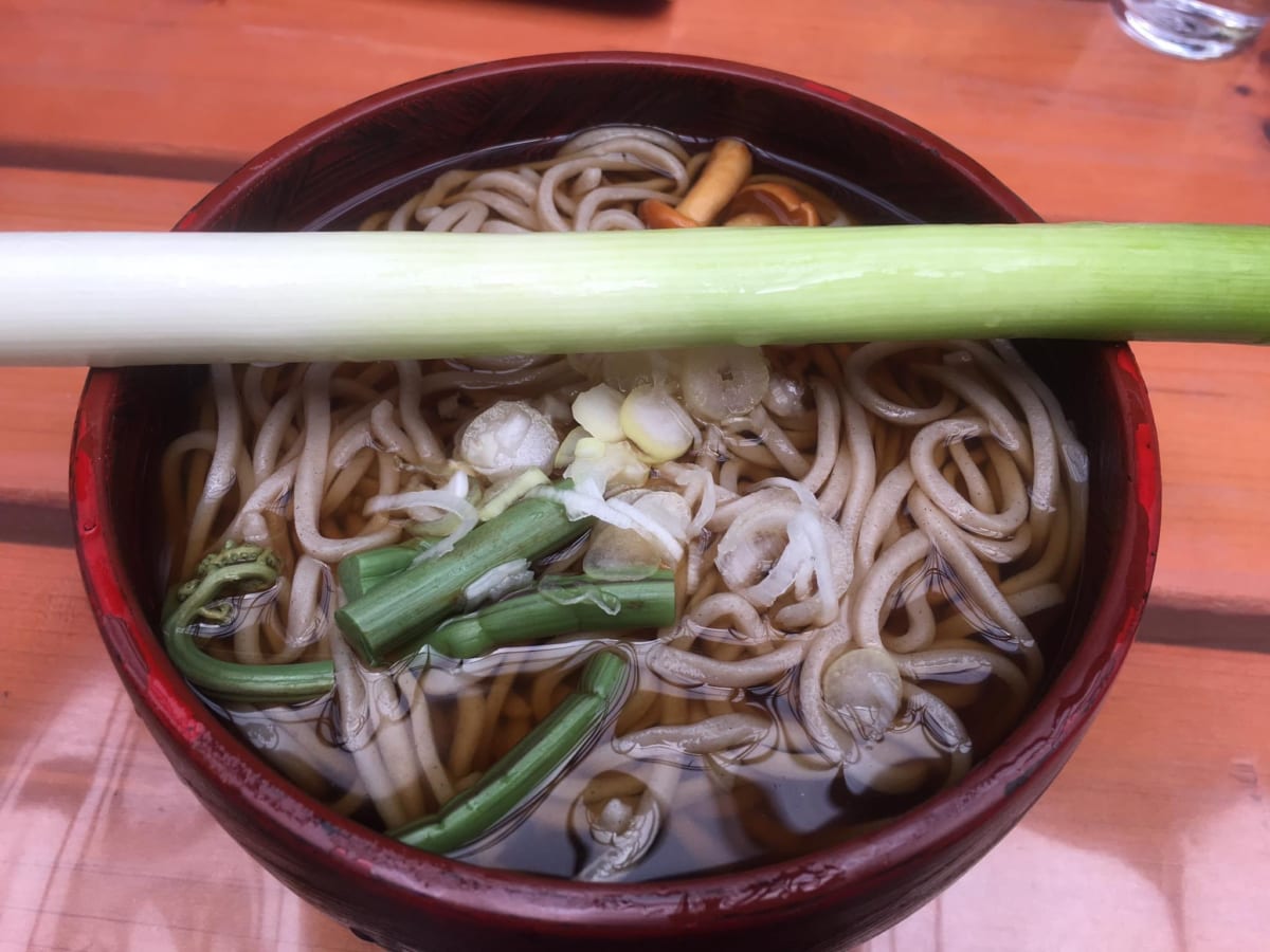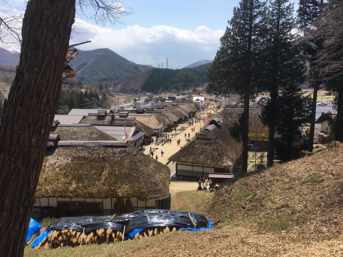 Ouchijuku is a famous village with many buildings preserved in the style of the Edo-era, before 1868. The buildings are of thatch, and displaying and selling many traditional Japanese crafts. A temple rises above the village at one end, allowing for excellent photos, and you can eat the local specialty of "leek soba", where you use an onion leek instead of chopsticks!