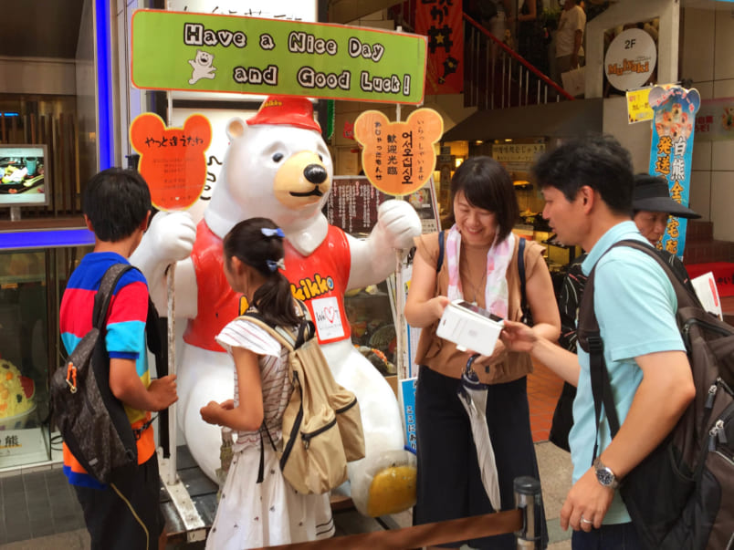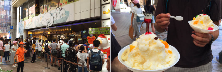 Be sure to head to the famous Shirokuma shaved ice shop after that. Their giant desserts are famous for their sweet, milky and fruity taste and the Shirokuma restaurant itself has an outside stand where many people line up to enjoy shaved ice. Have a look out for Kuma-kun!
