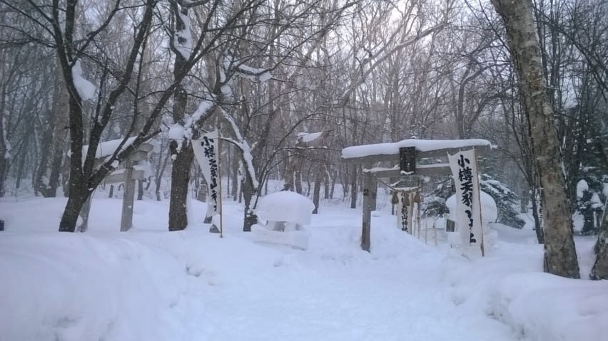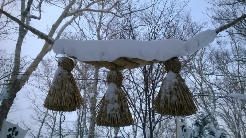 Entrance to shrine on Tenguyama, weighed down with snowIf you manage to be in Hokkaido over the New Year period, you will have a wonderful opportunity to see (and join) Japanese people on their first visit of the year to a Shinto shrine, called Hatsumode, in the snow! Many people will visit a Buddhist temple at midnight on December 31st (where you can hear, and sometimes even ring for yourself, the temple bell). Then on January 1st or 2nd, people will pay their first visit to the Shinto shrine. So why not also pick yourself up an omamori (a protective, lucky charm with different properties depending on the shrine or temple) and get your new omikuji (fortune) on this auspicious day.