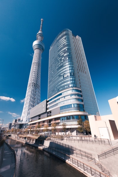 1. Tokyo Skytree - Tokyo Skytree was constructed as a tourist attraction, broadcasting and observation tower in 2010 in Sumida, Tokyo for cost of 65 billion JPY. It stands 2,080 feet tall making it the tallest tower in the world, and the second largest structure in the world becoming open to the public in May of 2012. It is primarily used for TV broadcasting for the Kanto area because the Tokyo Tower could no longer provide adequate coverage due to being surrounded by newly constructed skyscrapers.