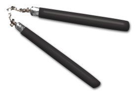 Originally for harvesting crops, the kama is a set of small sticks with a pointed blade on both edges. It is 11–12 inches long and is easy to carry. After all, ninjas most often came from farming communities and would use the tools they could get to great effect.