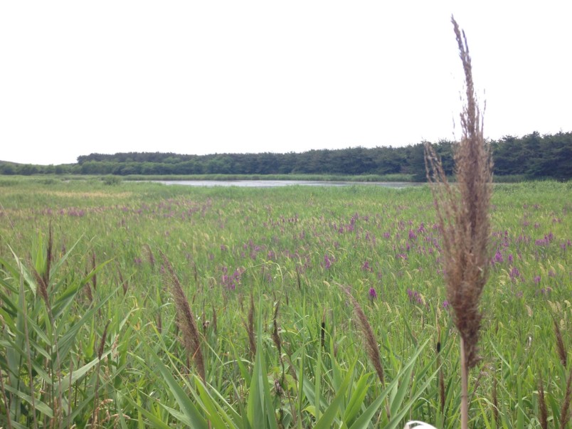 A stratovolcano, at 1,584 meters tall Mount Iwaki dominates this northwest section of Tohoku’s Ou mountain chain, Japan’s longest. East of it sits the castle town of Hirosaki, Japan’s apple capital, built between the Iwaki River and the Hira River south of where the Hira becomes a tributary of the Iwaki. The Iwaki River continues north providing water to farms carved out of the Tsugaru Plain that it passes through on its way to empty into Lake Jusanko. Yesterday you rode along an asphalt farm road nicknamed Melon Road, for good reason, on the same plain through fertile rolling hills dotted with farms and forests. West of the road were a series of lakes, ponds, marshes and wetlands between you and the sea. To the east was the Iwaki river, farm villages and the southern end of Tsugaru Mountains, the northernmost mountains of the Ou chain.