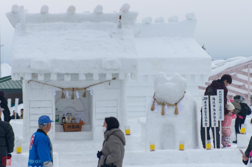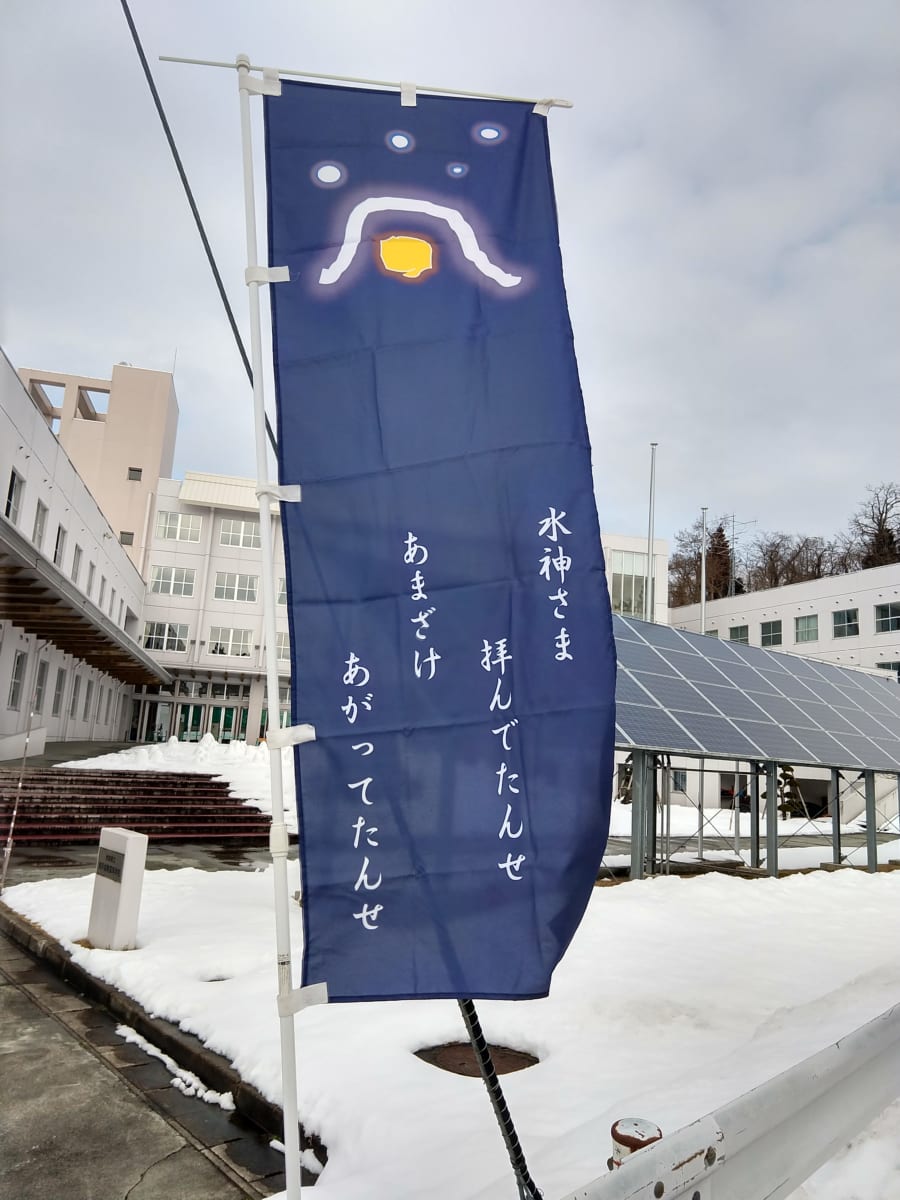 In the photo below, there’s a message written on a banner for the Yokote Kamakura Festival; a Kamakura is like an igloo. Here, we can see 「たんせ」used to ask "Praise the Water God, Raise a Glass of Amazake":
