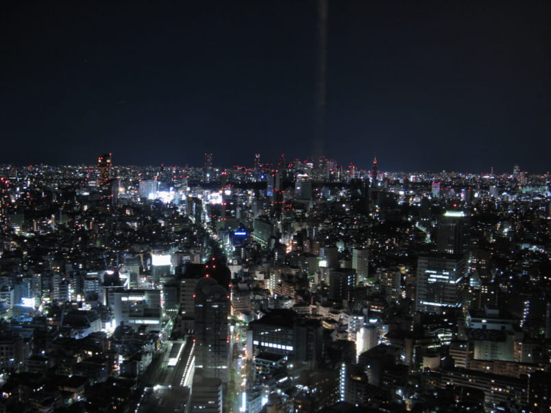 The urban landscape at night seen from above