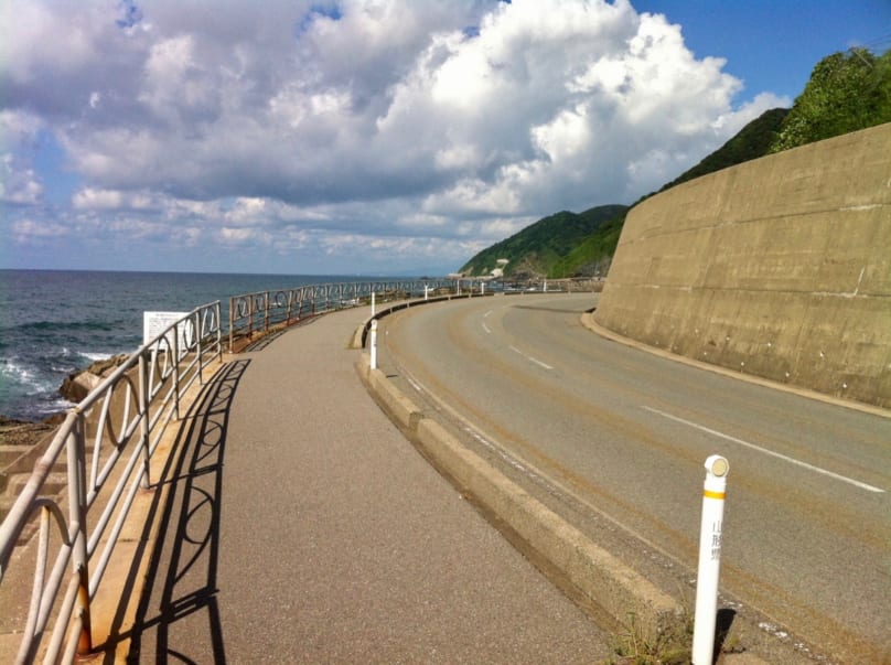 For the most part the coastal roads are great for cycling. There are often sidewalks and even long stretches of dedicated cycling paths and tunnels, especially in Niigata and Toyama Prefectures.