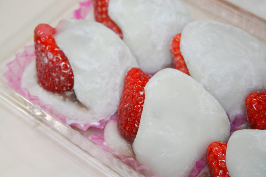 Every season in Japan is also marked by seasonal food. In spring, the most popular snacks are sakura mochi (桜餅) which is a pink gluttonous rice flour cake, ichigo daifuku (イチゴ大福) or strawberry rice cakes, and ikanago no kugi ni (いかなごのくぎ煮) or boiled young Japanese sand eels which are caught around February–March.