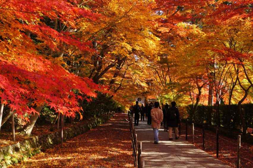 After the hot and humid summer, once it gets cooler, autumn comes along. Autumn is marked by spectacular foliage that grows throughout the country. The foliage atmosphere lasts for several weeks from October to December so you'll have plenty of dates to choose when to come visit. Furthermore, if hanami is related to spring or flower viewing, autumn is identical with momijigari (紅葉狩り) which means autumn-leaf viewing.