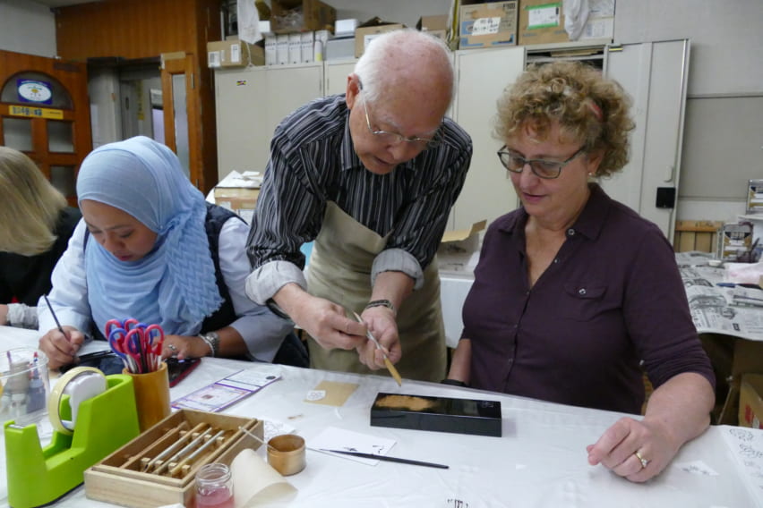 Other traditional crafts are also available, such as Japanese book binding and fan painting.