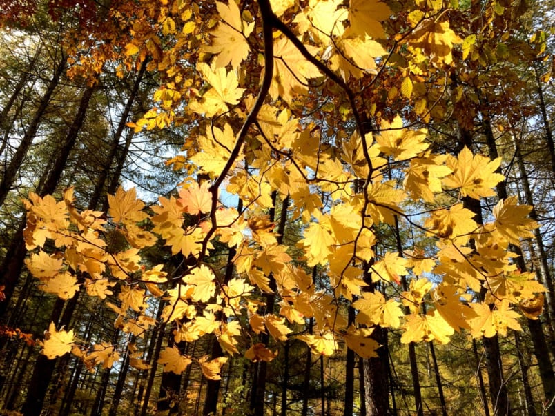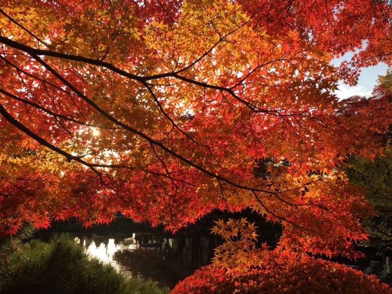 Colors begin turning in late September on Zao, Yamagata’s famous ski mountain, and usually peak in mid October. Take the ropeway up for a bird’s eye view of the foliage and surrounding landscape. Three different stations on the ropeway offer various trekking courses. There are no bad options: choose your fun depending on whether you want to walk the rim of a volcano, meditate at soothing ponds, or romp through the forest to a waterfall.