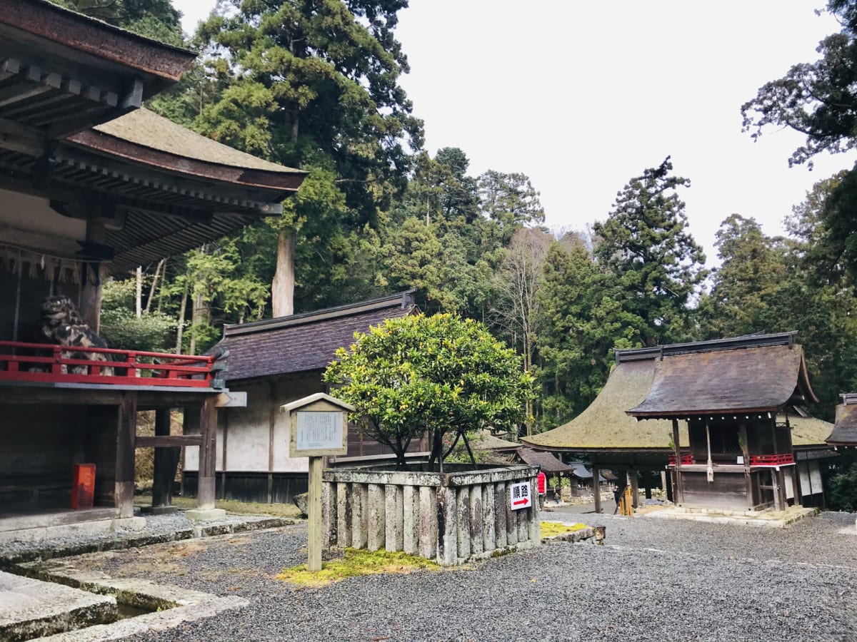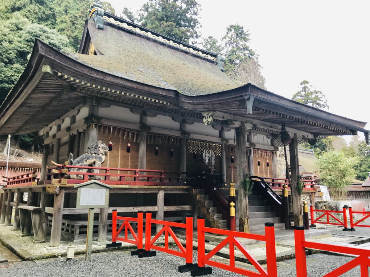 The shrine is recorded in the Kojiki (Records of Ancient Matters that chronicle Japanese myths, legends, oral traditions and semi-historical accounts outlining the origin of the Japanese archipelago) from the 8th century. The West Hall of Worship called Nishi Hon-gū and the East Hall of Worship called Higashi Hon-gū have been designated as National Treasures by the Agency for Cultural Affairs. Although the shrine buildings were burnt down when Oda Nobunaga destroyed Enryaku-ji in 1571, they were reconstructed towards the end of the 16th century.