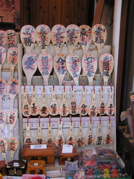 If you're hunting for souvenirs, look no further–they have everything from postcards to chopsticks to deer figurines to I'm-a-millionaire sensu fans, and...you may wonder what's with all the rice scoops for sale? You'll find that Miyajima is famous not only for its Great Gate but also for its Great Rice Scoop, displayed at the end of Omotesando Shopping Arcade! It is 7.7 meters long and weighs 2.5 tons!
