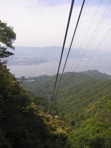 While you are on Miyajima, there is plenty else to do besides seeing Itsukushima Shrine. The island is also home to two five-story pagodas, as well as the Daishoin Temple, where many valuable Buddhist statue sutras are kept. If you take the the Miyajima Ropeway up to the Shishiiwa Observatory, you get a spectacular view of the many small islands in the Seto Inland Sea. The Ropeway employs two systems circular, and funicular, and when you reach Shishiiwa Station be careful not to lose your hat! Another 20 minute hike will take you to the summit 535 meters above sea.