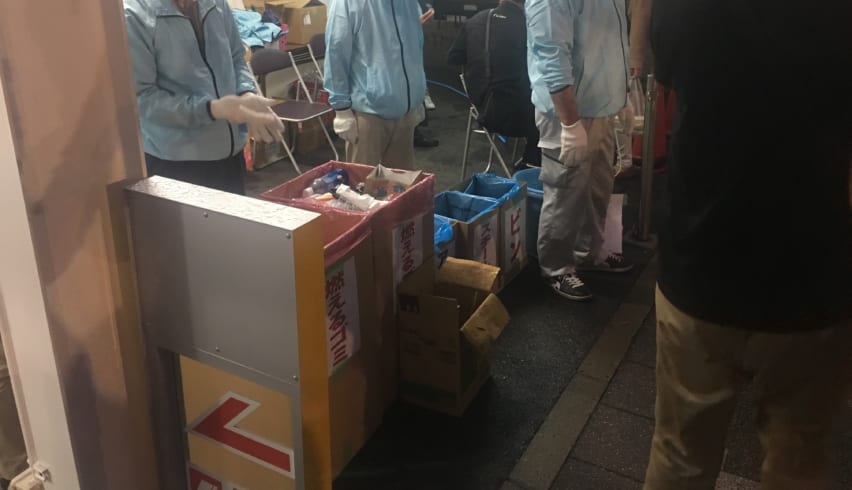 A close-up of the entrance – on the left side of the door it reads “Full of candy, full of dreams. Welcome to Okashi-Honpo”; in the middle “Be careful of heat stroke. Take action against it”; and on the right “There are many candies for all occasions such as children’s parties, sports day, festivals, and picnics”.