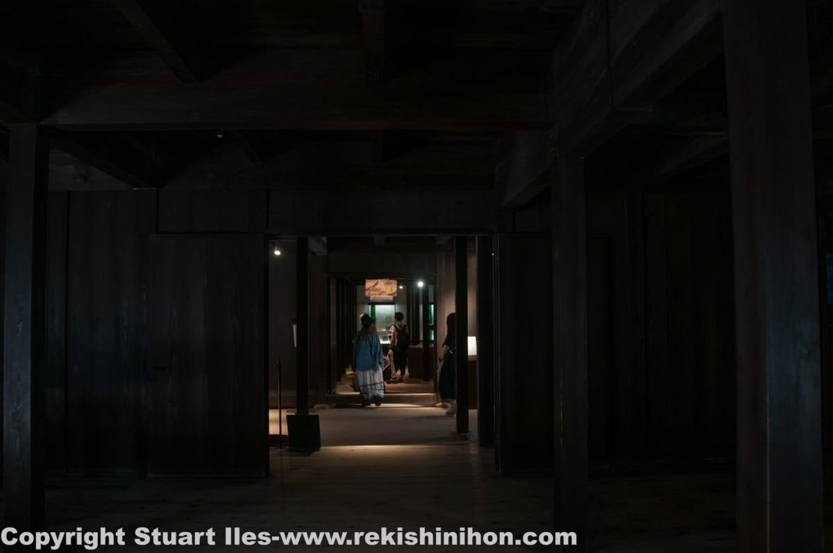 Dejima is located to the south of Nagasaki City and is easily accessed by tram. I got off the tram and was instantly surprised, as I was expecting to see Dejima on the seaside as it once was. However, I soon realized Dejima is no longer an island. Landfill and port modernization from the early Meiji Period has left Dejima at least 100m from the ocean to the west and at least double that to the south which I think is a shame. Oh well, it is what it is, and I made my way to the west gate ticket counter which was once the ocean side loading dock. The only proof we can see of the old dock is through a glass window on the ground near the gate where excavations have uncovered the original steps that used to lead down to the ocean.