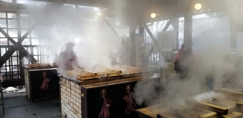 But how does this cooking method actually work? These restaurants have their own steam, piped into cooking stations made from concrete, called the jigokudama. The food then will be arranged in a bamboo tray, placed on a metal basket with long handles, before you put them into a well-like hole. This spot then will be sealed with a big wooden lid, and that’s it! All you have to do after is just to switch on the pipe and wait for it to cook. Cooking time varies depending on the type of food; hard-boiled eggs, for example, would take you about ten minutes, while soft vegetables like spinach would be done in three minutes. No worries about the time, though! The staff will tell you when it’s ready, or in some places, they’ll give you a timer that will make a sound once your food is done.