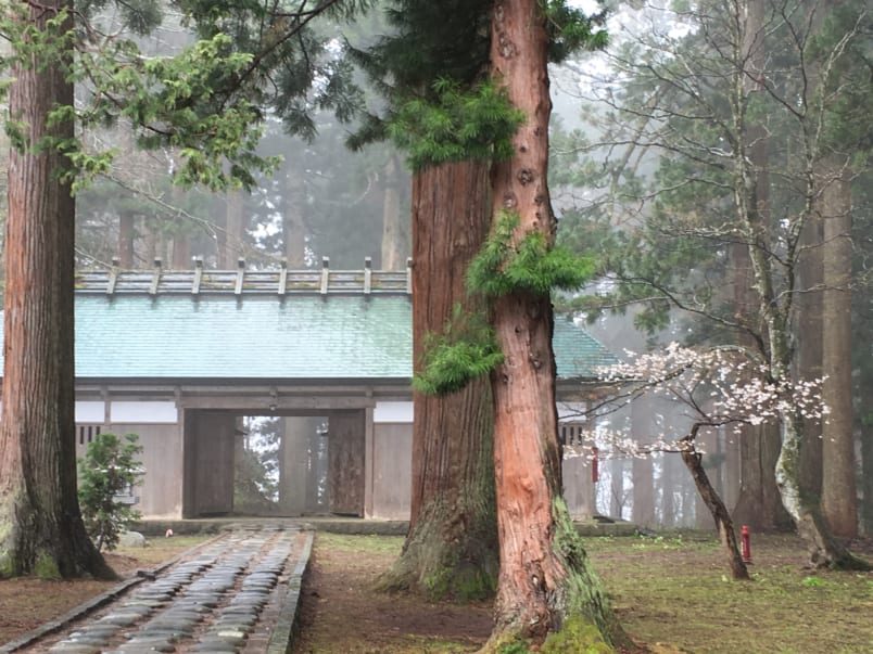 Small elevated wooden structures lining the main shrine and scattered along the path each house a Goshintai, or sacred object from nature. You can also catch vistas of the Shonai plain and the surrounding mountain ranges.