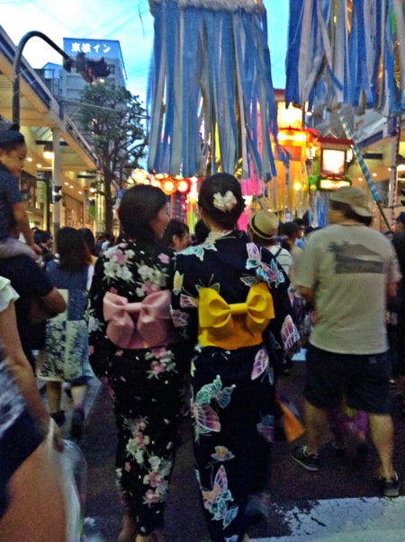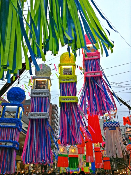 And what’s even better: at night, the decorations come to life as they are lit up giving the festival a more romantic feeling. And because the omatsuri of Tanabata is a family celebration, you will see a lot of children having fun around, as there are also activities for them, such as ring tosses and fishing prizes.