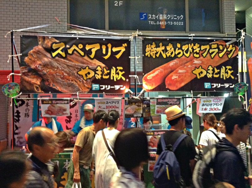 The Tanabata Festival in Hiratsuka is one of Japan's most famous and largest celebrations, with thousands of people attending each year. During the festival, the main streets of the downtown are closed and filled with at least 2000 food stalls, offering all kinds of food, from traditional Japanese junk food to even Turkish food.