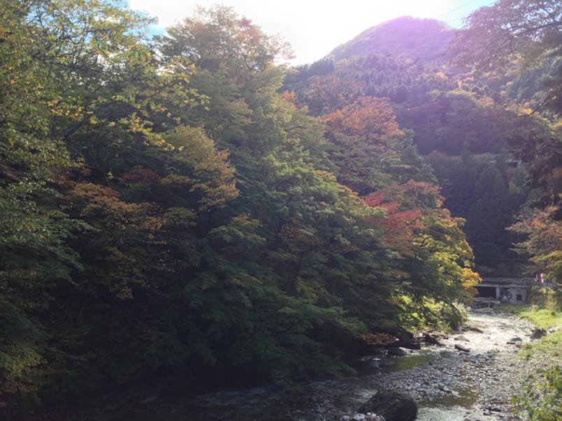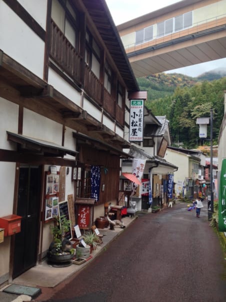 From Sekizenkan, follow the winding narrow street opposite. There’s a cluster of earthy restaurants and an old-fashioned games parlour here: the latter is particularly recommended for playing a fun game of pinball (don’t worry, this one isn’t gambling). You’ll eventually cross a bridge and be on the Shima Highway. Follow the road upstream. Urban gives way to rural, and your walk takes you through some stunning valley scenery. Stop by the free open air foot bath on the way to rest and soak in your surroundings.