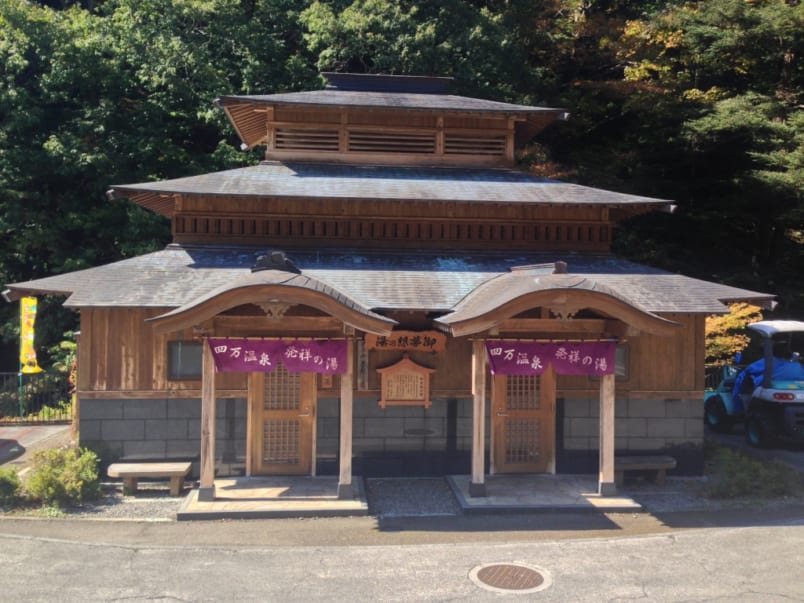 You'll eventually come to a fork in the road. There's things to see in either direction, so if possible try to leave time to see both. To your left, the valley continues to climb, culminating in the “Gomusou no Yu” (御夢想の湯) hot spring baths. This fetching wooden building is shrouded in legend, said to be the first hot spring to be founded in Shima Onsen. As it sits right at the head of the valley, the steaming waters pack a pretty powerful punch. Best of all, entrance is free!