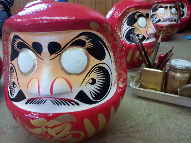 As with many good luck items in Japan, Daruma are burned at the beginning of every new year, on the grounds of the temple where they were purchased. This ritual has different names in different regions. In the Shinshu/Nagano area it is called 'Sankuro'. This ritual often takes place along a river, where the children will also roast mochi over the flames as the Daruma turn to ash and the parents talk and try to keep their kids’ clothing from catching fire.