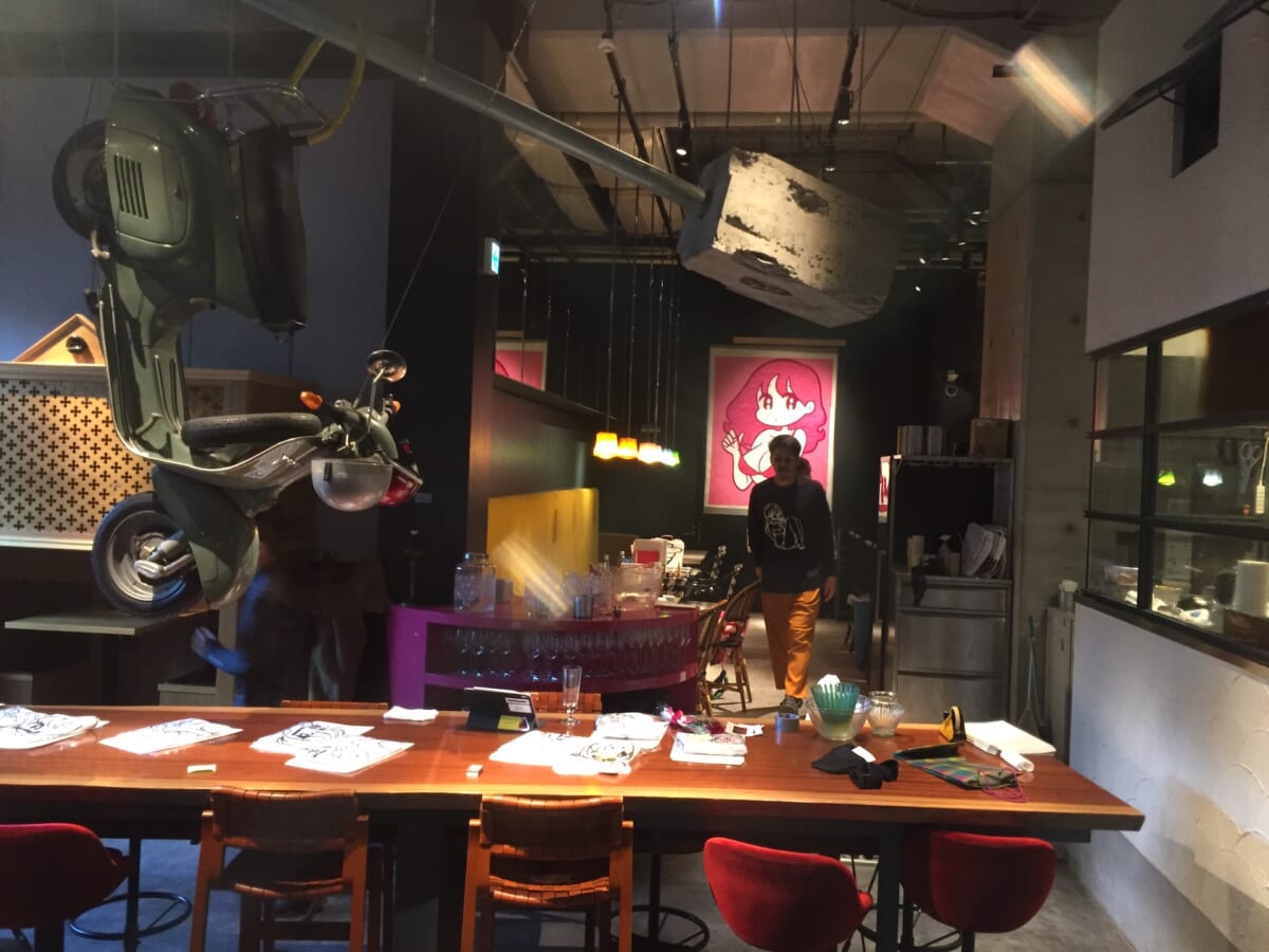The thing about the Nakame Strip is that there are many places that you could feel at home and stop for a while depending on the time of day and what took your fancy. If you were to survey all shops and bars on the Strip and mix them all up, you would have quite a cocktail with about 8.5 cups of coffee, 11 spoonfuls of French branded fashion with a splash of kimono, 3 parts hair stylist, a small but strong dash of the literary, and finally a solid base of about 17 healthy servings of bar and restaurants of all types. Something like a strong caffeinated cocktail served in a fashionable glass with a counterculture literary edge to it.