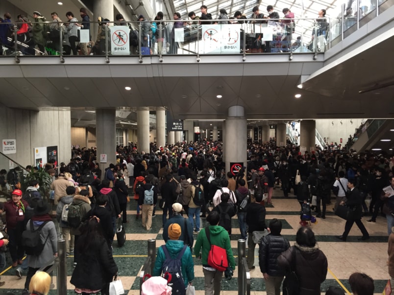 Also something to consider is the fact that whether inside or outside, you will be moving elbow-to-elbow with about 500,000 other attendees who move in and out of Tokyo Big Sight freely. One can be stripped down to the most socially acceptable of summer attires, but dressing comfortably will be in vain when it comes to mingling with the human masses who are feeling the summer heat as you are. Even worse than wading through a well-organized packed convention hall is being crammed into a crowded train car with everyone plus their large purchases and cosplay. Kudos to the train staff because they yell themselves hoarse in shepherding people from the gate to the train on crowded platforms that don’t have guard rails at the edges to prevent people from falling in.