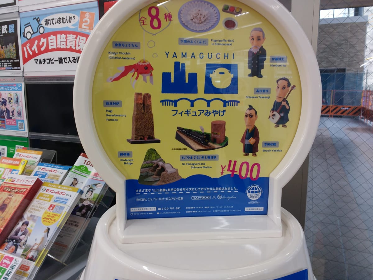 There are three famous figures of Japanese history, none of which are internationally famous though they are mostly known in Japan. Hirobumi Ito, the first prime minister of Japan, Shinsaku Takasugi, a heroic general and Shouin Yoshida, an educator. As well as these odd choices, there is also a broken furnace from the ruins of Hagi Castle where some of the first ore in Japan was processed. This collection does not make for the most interesting line of trinkets, especially for children who are usually the main target market for small cartoonish models of this nature. I have no idea who these are aimed at. Many of these are unintelligible to the average foreign visitor and may even be confusing to Japanese tourists as well.