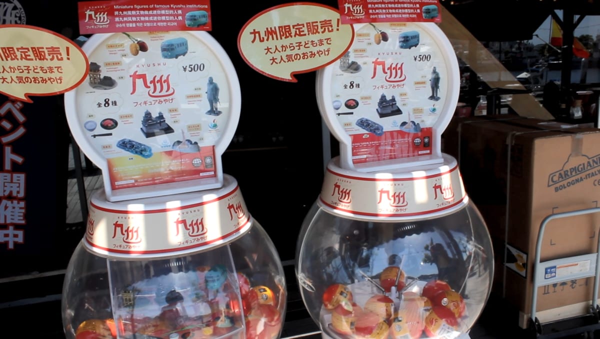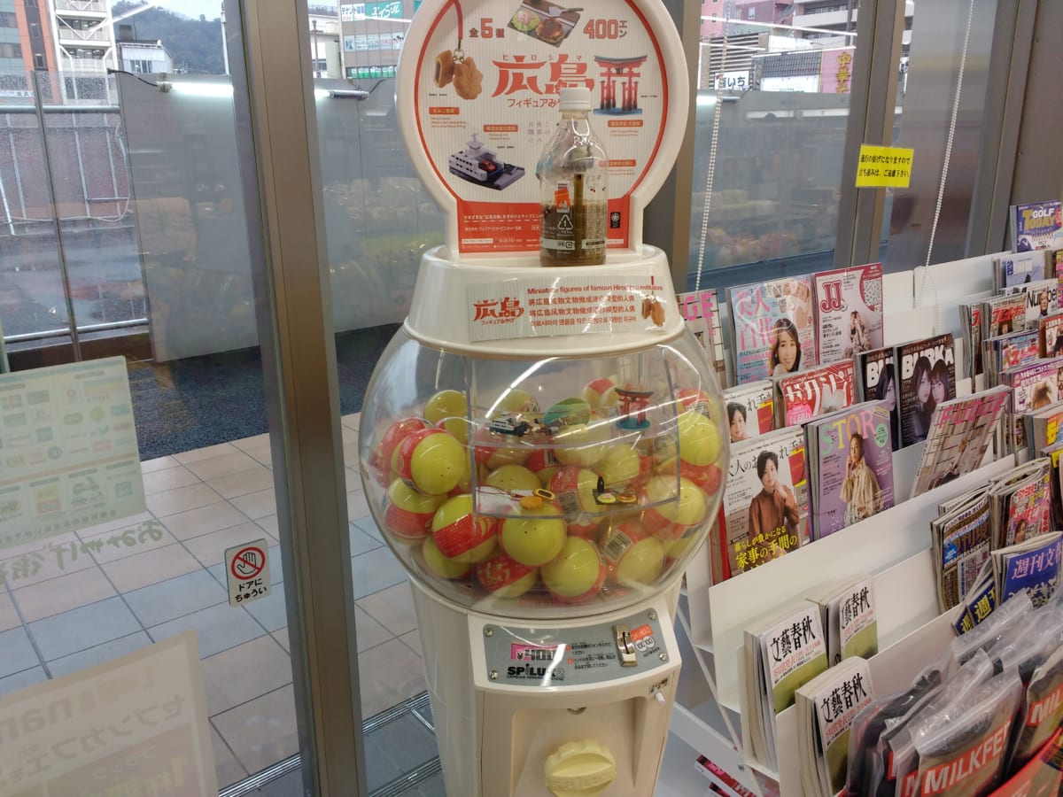 Massively popular toy dispensing capsule machines known as “Gachapon” can be found all around Japan. Named onomatopoeically “gacha” represents the sound that the machine makes when you put a coin in and twist the handle, and “pon” represents the noise of a little plastic ball falling out.