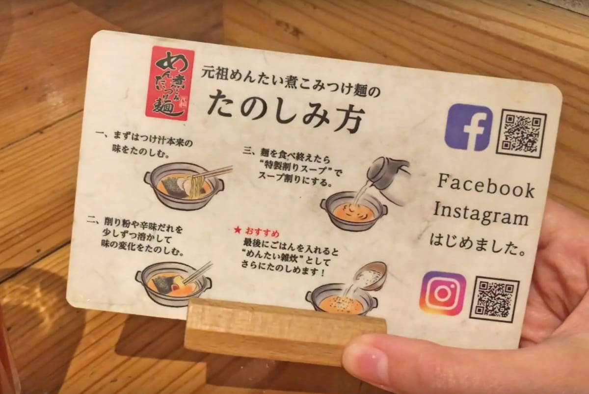 To put it simply, tsukemen (つけ麺) are noodles which are eaten after being dipped in a separate bowl of soup or broth. Ramen are used in general for this dish though sometimes soba or udon is used. The noodles are typically served cold and you’re dipping them in the hot soup or broth that can be warmed up several times for free in the restaurants. You can find different ways of serving and ingredients, but the most used ingredients are mainly nori, chashu (pork slices), menma (bamboo slices), and boiled eggs that are served on a side dish or together with the noodles. You can find small pots on the tables or counter that are filled with hot water that you can fill into the soup or broth to drink it in the end after you ate all the noodles.