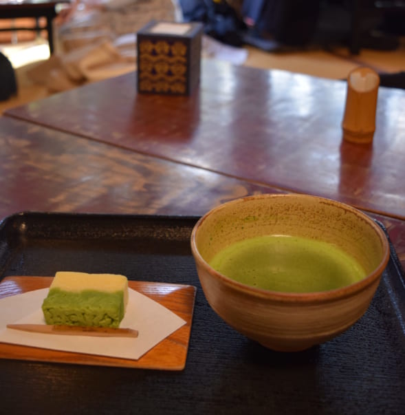 As you enter, the tradition continues – you’ll see all of the other patrons shoes are off in the genkan, or entryway. It’s impossible to miss, so be sure to take your own shoes off as well. The seating here consists of cushions on a tatami mat floor, with low to the ground tables. It’s surprisingly comfortable, and adds to the ambience of the tea house.