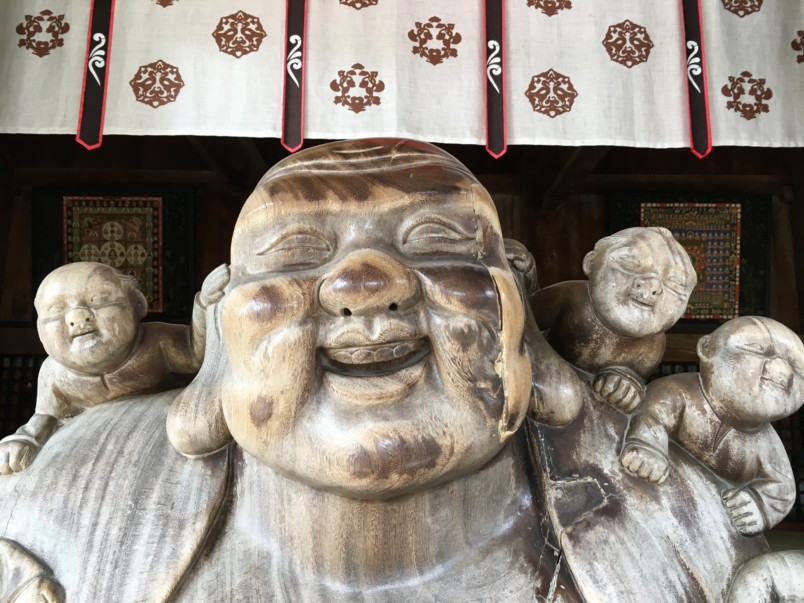 Here you will want to pay your respects to the jolly figure out front. Hotei, as he is known in Japanese, is a Chinese folklore deity that represents contentment and abundance. Visitors praying to heal ailing parts of the body have rubbed the wooden figure smooth. Feel free to follow suit.