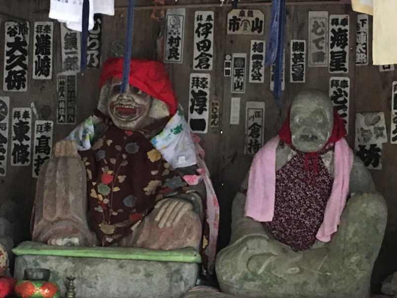 You’ll see a small structure low to the ground that houses statues of ugly women. They are the gatekeepers between the land of the living and the dead, or earth and heaven. In days past, pilgrims would change their clothes here before beginning the steeper part of the trail that winds its way amid moss-covered rocks.