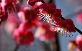 In Japan, plum blossoms mark the end of winter and the beginning of spring. There are many famous spots to view the beautiful red, pink and white plum blossoms.