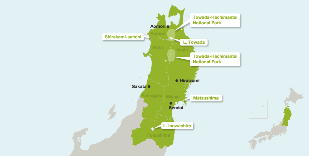 The Tohoku region includes six prefectures: Akita, Aomori, Fukushima, Iwate, Miyagi and Yamagata. It is well known for its beautiful natural sceneries.